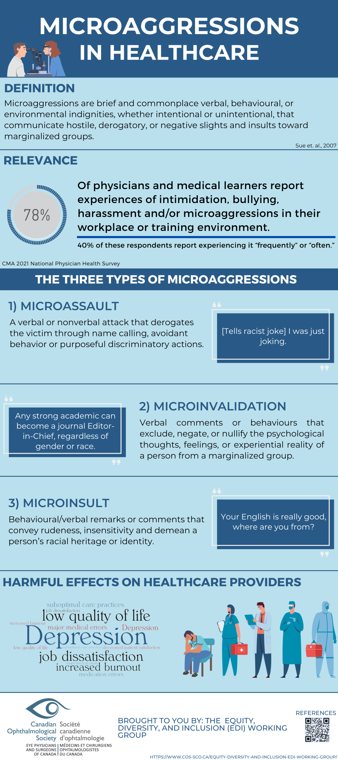 Lee, E. Y., Farrokhyar, F., Bakshi, N., Levin, L. A., & Ahuja, N. (2022). Equity, diversity, and inclusion landscape in Canadian postgraduate medical education for ophthalmology. Canadian Journal of Ophthalmology. https://doi.org/10.1016/j.jcjo.2022.08.015